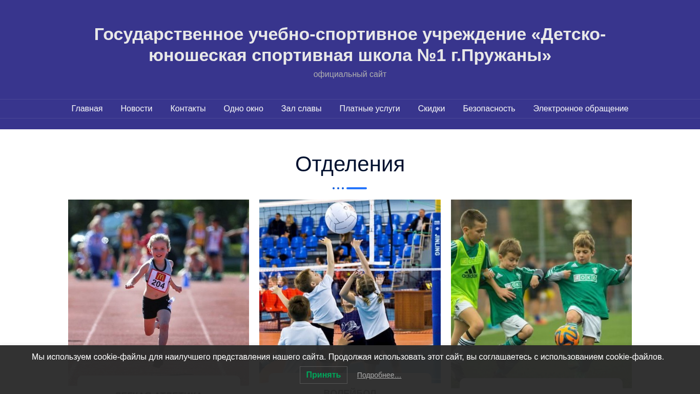 | Название / Заголовок | Государственное учебно-спортивное учреждение «Детско-юношеская спортивная школа №1 г.Пружаны» — официальный сайт |