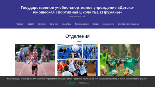 | AI-анализ | The web project is the official website of the State Educational and Sports Institution "Children and Youth Sports School No.1 of Pruzhany." The website offers information about the institution's main sections, including news, contacts, one-window service, a hall of fame, paid services, discounts, safety, and electronic application. Visitors can find information about various sports sections, such as light athletics, volleyball, and football, and their respective trainers-teachers. Recent news includes an event by the Prujan District Organization of the Belarusian Red Cross on September 25 for safety awareness and an invitation for children to join football training sessions. The website also includes information about the history and mission of the institution and a policy on confidentiality. |