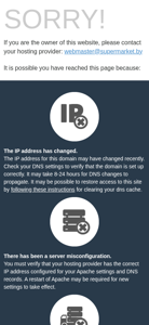 | AI-анализ | This website, supermarket.by, is a default landing page for a Belarusian .BY domain. The title of the page is "Default Web Site Page." The description is blank. The top keywords for this website include "the," "may," "for," "this," "have," "dns," "site," "you," "hosting," "provider," "address," "has," "changed," "domain," "settings," "server," "page," "possible," "verify," and "unp." The content of the page is an error message informing users that the IP address for the domain may have changed and advising them to check their DNS settings or clear their DNS cache to regain access to the site. The page also mentions the possibility of a server misconfiguration or the site moving to a different server. The domain is registered to cPanel, L.L.C |