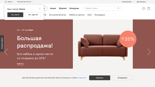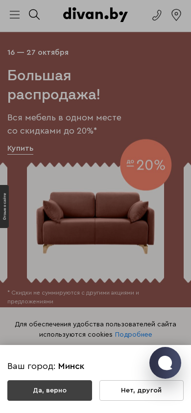 | SEO-описание | Диваны от производителя №1 🛋️ Купить диван в Минске недорого с доставкой по РБ ⭐ Большой каталог мягкой мебели с фото и ценами ✔️ Скидки до 50% ☝ Беспроцентная рассрочка |