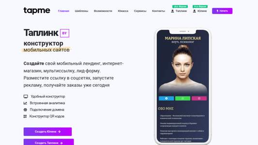 | AI-анализ | This online resource is called "Таплинк Бай" and offers a free constructor for creating taplinks. The website provides the functionality to create mobile landings, internet shops, multi-links, and lead forms. Users can share the link to their created pages in social media networks and start receiving orders immediately. The constructor includes a built-in analytics feature, the option to connect a domain, and the creation of QR codes. The service is simple to use: create your page, share the link, and start receiving customers. The website offers two versions: a lite version and a pro version. Additionally, there are separate administrative panels for both versions. The service allows users to create a taplink for simple tasks and increase the capabilities of their social media profiles. The domain taplink.by is available for selection, along with 38 types of content blocks and three pre-made template pages, including a WhatsApp widget |