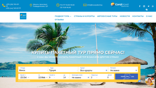 | SEO-описание | Купить пакетный тур прямо сейчас. 100% поддержка клиентов 24/7. Турагенсво CoralTravel - мы будем с Вами на протяжении всего отдыха! |