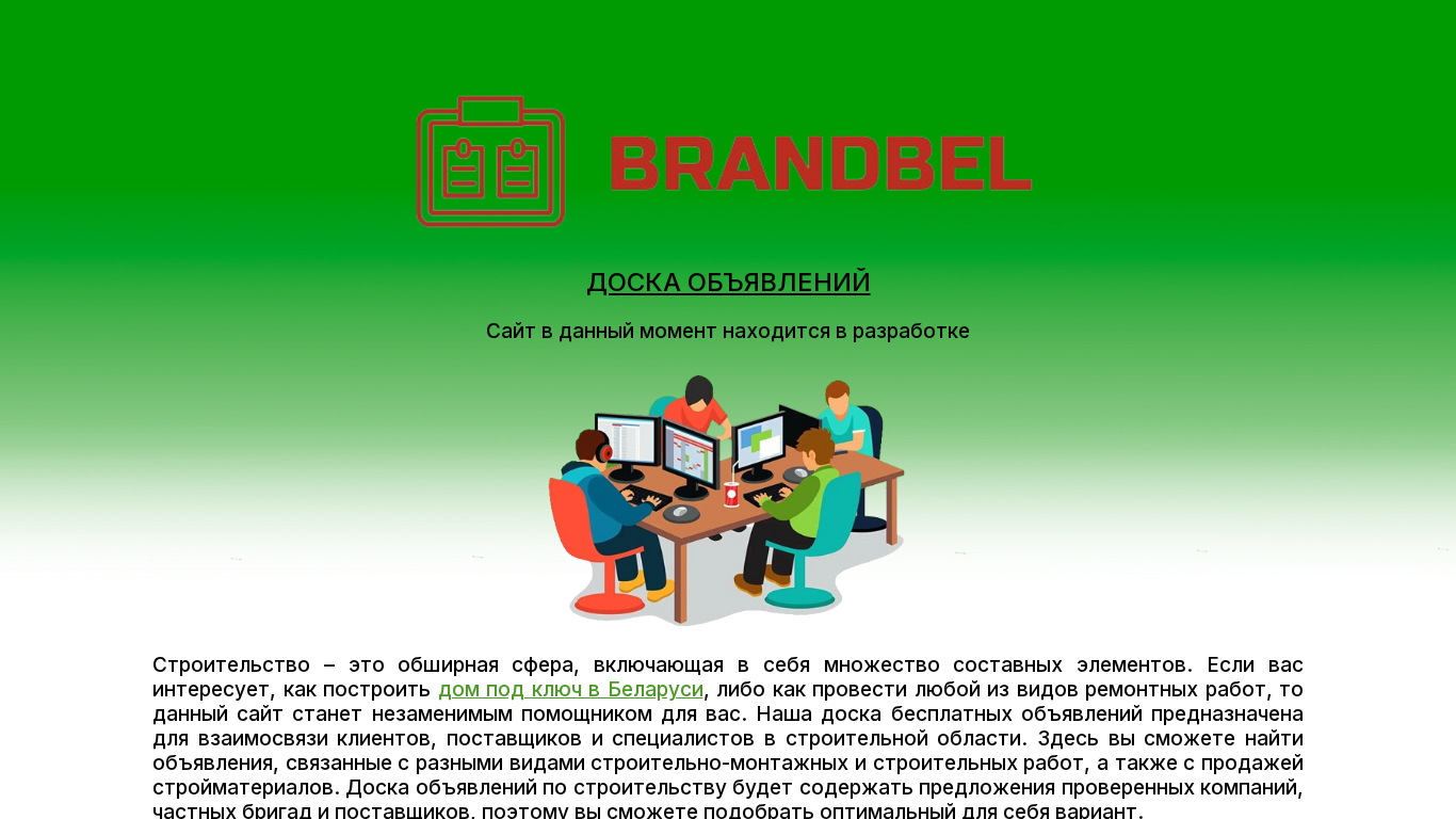 | AI-анализ | --- The portal brandbel.by is a construction and repair platform with a free ads section for Belarus and Minsk. It offers various construction works, electrical services, foundation pouring, key turn repairs and more. Users can post announcements or find contractors for any construction projects. The site is under development and will include a wide range of construction and montage works, as well as the sale of construction materials. The ads board will contain verified companies, private teams and suppliers, allowing users to choose the optimal option. Ads for construction works include: construction works, which cover a wide range of activities on construction sites: building, restoration, reconstruction, extension of various types of buildings and structures, development and installation of under-crane ways, installation of external engineering communications, construction of bridges, embankments, foundation and support structures, landscaping and more. Roofing works are an essential part of construction, capital |