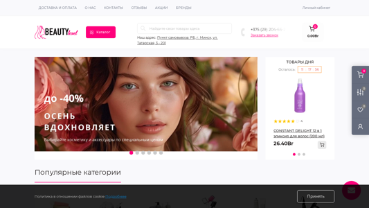 | AI-анализ | The web project "Beauty-level" is a network of professional cosmetics stores where you can buy cosmetics in Minsk and Belarus without leaving your home. The website offers professional cosmetics for delivery in Minsk and all of Belarus. The top words on the website include "волос" (hair) with 44 occurrences, "товара" (goods) with 34 occurrences, and "наличии" (availability) with 33 occurrences. The website also features a catalog, information about deliveries and payments, contacts, and reviews. The domain is beauty-level.by. |