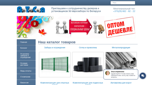| AI-анализ | --- The web project "Rotacon.by" is an e-commerce platform selling fencing, gates, and related components in Minsk, Belarus. The company offers a wide range of products including fences, gates, meshes, wires, and accessories for installing European fence panels. They work across Belarus and provide free delivery to regional centers. The site features competitive prices, and contact details for inquiries are provided, along with opportunities for dealers and installers to collaborate. The catalog includes various types of fences, such as 3D European fences, and accessory items like rollers and brackets. Other offerings include temporary fencing, grilles, and plastic PVC mesh. The site also sells metal products like oiled steel sheets and tubes, and crane systems. The company has been in business for 14 years and is a leading supplier of |