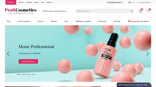 | SEO-описание | Интернет-магазин косметики в Беларуси. Большой выбор товаров — уход за кожей лица и тела, уход за волосами, инструменты, подарки. Профессиональная косметика. Доставка в любую точку Беларуси. |