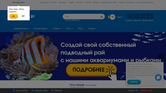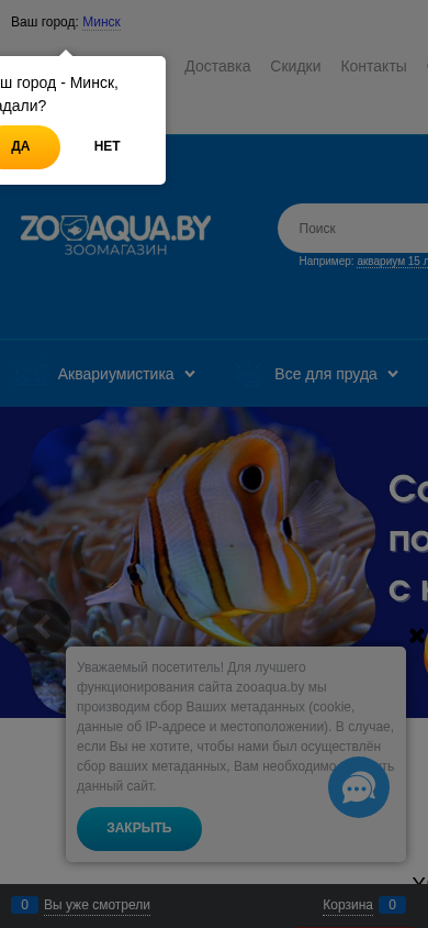 | AI-анализ | --- This online resource is an internet pet store named 'ЗооАква' based in Minsk, Belarus. The website offers a wide range of products for animals including aquarium inhabitants, aquarium fish, invertebrates, crustaceans, reptiles, decorations, and accessories for aquariums and terrariums. Customers can compare prices, add items to their cart, and view their shopping cart. The website also features hits such as aquariums, aquarium gold, aqua Phoenix, and SEA STAR Gloxy Optic. There are sections for aquarium equipment, lighting, heating, and filtration. The site also offers live plants, decorations, and various types of animal food and accessories. Payment and delivery options, as well as discounts, contacts, and a bonus program are available. The website is available for both retail and wholesale customers and |