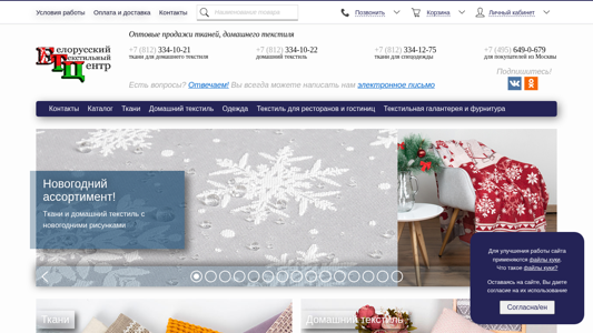 | SEO-описание | В Белорусском Текстильном Центре можно купить ткани, швейные изделия крупных текстильных предприятий Республики Беларусь. Оптовая продажа в РФ и ЕАЭС. Бесплатная доставка до Москвы. ООО «БТЦ» +7 (812) 334-12-74 |