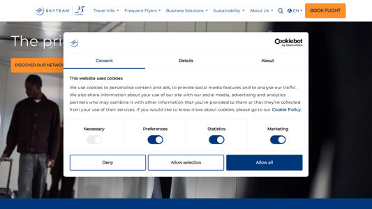 | AI-анализ | The website SkyTeam Global Airline Alliance is a platform dedicated to transforming the future of travel through smart and integrated customer journeys. It is a global airline alliance and uses cookies to personalise content and ads, provide social media features, and analyse traffic. The website cannot function properly without necessary cookies, including those for security and optimizing CMP product delivery. Other cookies are used for distinguishing between humans and bots, and storing user preferences. The website includes information about the alliance and press releases. Keywords associated with the website include 'storage', 'maximum duration', 'type', 'html', 'local', 'persistent', 'pending', 'storyblok', 'story', 'about', 'press-releases', 'cargo', and 'cookie'. The website's domain is skyteam.com. |