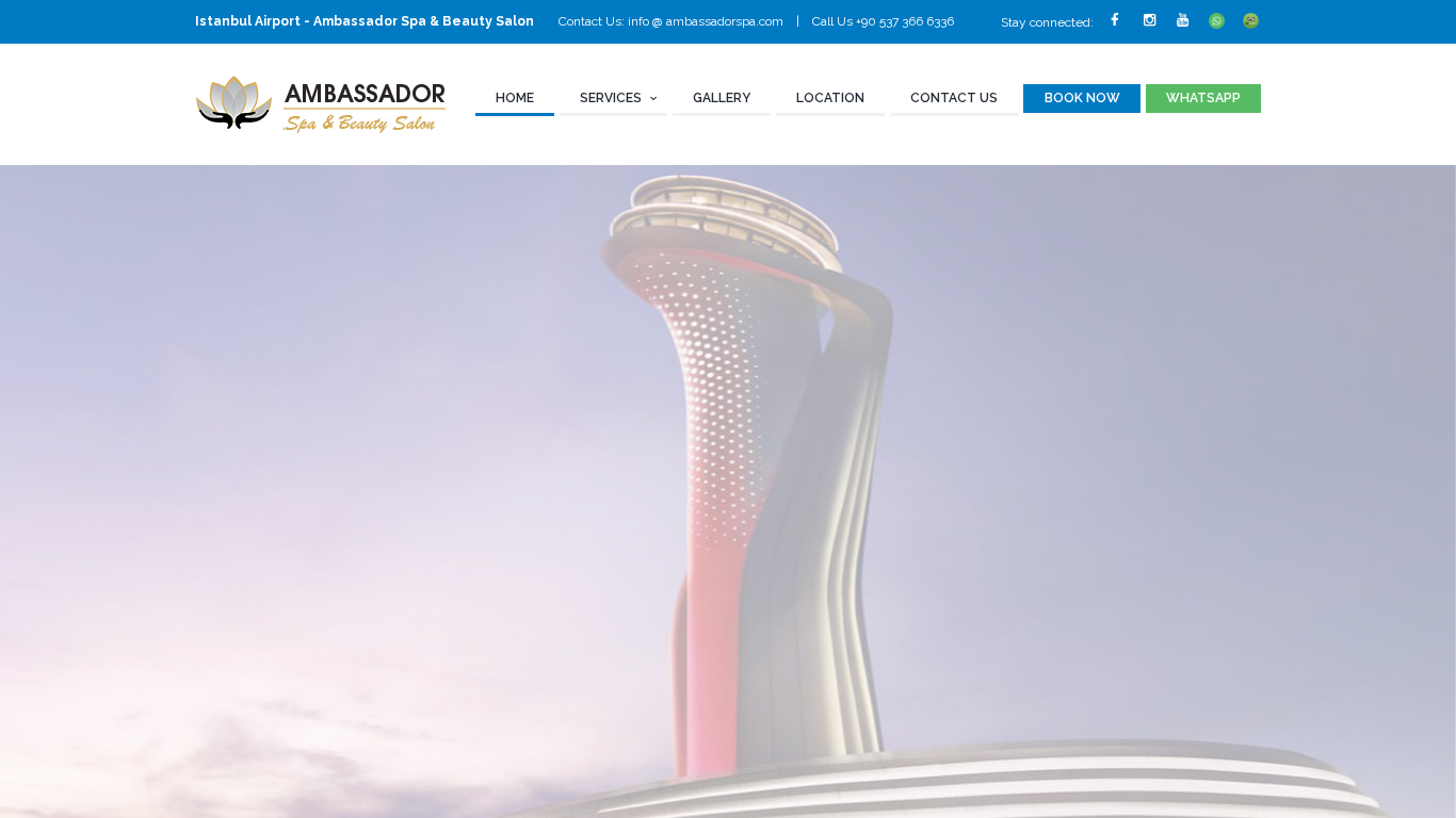 | SEO-описание | The Ambassador Spa & Beauty Salon Istanbul Airport in Istanbul Airport is one of the few transit spas worldwide that offers an extensive range of spa & beauty treatments under one roof. |