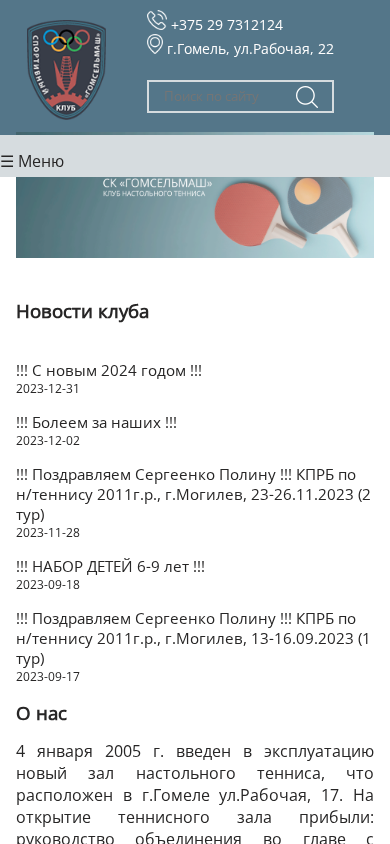 | AI-анализ | The portal ttgomel.by is a website for the table tennis club "Гомсельмаш" located in the city of Гомель, Belarus. The website includes news, a calendar of events, a rating system, a gallery, and contact information. In January 2005, a new table tennis hall was opened, which is now open to both children and adults. The hall has a size of 300 square meters and includes changing rooms, toilets, showers, and a training room on the future. The hall is equipped with six Stiga Expert Roller tables, which can accommodate a seventh table, and the opportunity to train with a Donic Robopong 2040 robot and sparring partners. The club organizes a large number of table tennis tournaments for players of various skill levels. The website provides information on upcoming tournaments and their results, |