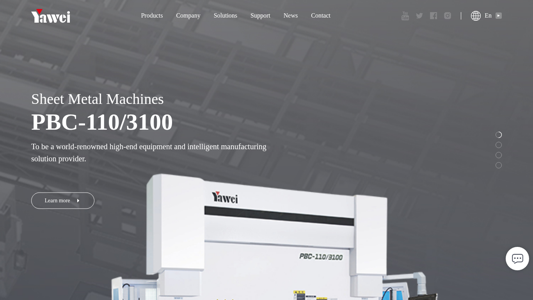| AI-анализ | This website is for Jiangsu Yawei Machine Tool Co., Ltd., a manufacturer specializing in various types of sheet metal machines, CNC press brakes, CNC panel benders, CNC turret punches, sheet metal laser cutting machines, tube laser cutting machines, and other metal processing equipment. The company offers automation equipment, stamping machines, servo presses, mechanical presses, fully automatic stamping lines, multi-stations progressive die production lines, blanking lines, cut-to-length lines, slitting lines, special laser equipment, 3D CNC laser cutting machines, 3D laser welding and cladding machines, laser surface treatment equipment, and laser micro-nano processing equipment. Additionally, the website provides information on intelligent manufacturing services, linear robots, industrial internet platforms, industrial management software, warehouse logistics automation, and digital plant planning. The company's profile, |