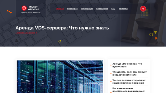 | AI-анализ | --- The website 'Invest Weekend - Центр "Стартап Теchnologies"' is dedicated to providing information on various topics related to technology startups, business ideas, and VDS-server renting. The website features sections on a competition, registration, a community, and frequently asked questions, as well as contacts. The content includes articles on topics such as the importance of a VDS-server in today's digital business world, what to do if a social media account is hacked, common issues and solutions for washing machines, and how a bathroom can transform a home's interior. The website was last updated on September 15, 2025, by 'admin'. |
