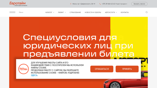 | AI-анализ | The website Eurotime is a leasing company based in Belarus offering vehicle leasing for both physical and legal entities. Services include leasing of taxis, special equipment, buses, and motorcycles in Belarus. The website features a catalog of new and used vehicles, including cars, buses, commercial and cargo transportation, and motor technology. It also offers operational leasing, vehicle subscription, payment and insurance options, news and reviews, auto services such as tire services and car washing, and registration with the traffic police. The company information section includes details on the team, partners and clients, reviews, legal information, and ESG initiatives. The press center provides press releases and presentations for download. The website is available in Belarusian and Russian languages, with options for various regions including Minsk, Brest, Vitsebsk, Homiel, Hrodna, and other regions. Visitors can |