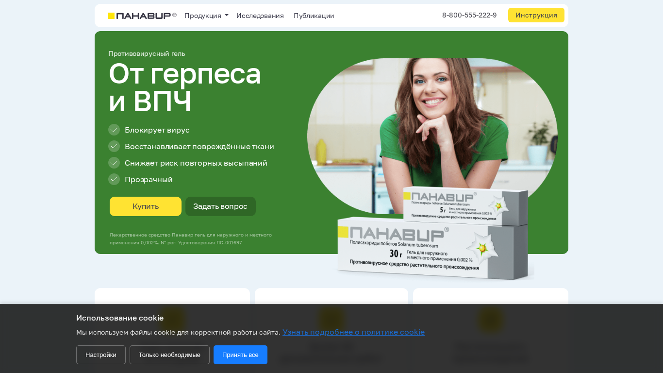 | SEO-описание | Лечение герпеса. Панавир гель - устраняет зуд, жжение и воспаление при первых признаках герпеса |