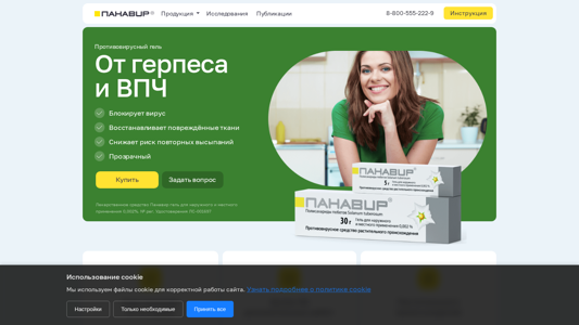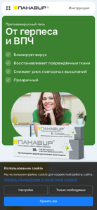 | AI-анализ | This online resource is dedicated to providing information and selling various products related to the treatment of herpes, papilloma, and condyloma. The title of the website is "Лечение герпеса, папиллом, кондилом" (Treatment of herpes, papilloma, and condyloma). The website offers a product called "Панавир гель" (Panavir gel), which is described as relieving itching, burning, and inflammation during the early stages of herpes. The website also mentions several other Panavir products, including "Панавир Инлайт," "Панавир Интим," "Панавир Нормафлор," "Панавир Дент," and "Панавир Гель От герпеса и ВПЧ" (Panavir Inside, Panavir |