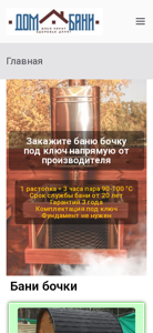| SEO-описание | Перевозные бочковые домики бани, на участок за город. Изготовление, доставка, монтаж. Гарантия. Звони, забирай, до 100 градусов нагревай! |