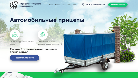 | AI-анализ | This online resource is an e-commerce website dedicated to selling truck trailers, or auto-prices, in Belarus. The title of the website is 'Автомобильные прицепы' (Auto-prices), and the description includes keywords such as 'прицепы' (trailers), 'время' (time), 'стоимость' (price), and 'какой' (which). The website offers a catalog of trailers with various weight and size capacities, as well as options for high sides and self-loading ramps. Users can calculate the price of a trailer by filling out a form on the website, and the company claims to have the most competitive pricing on the market. The website operates daily from 8:00 to 21:00 and offers a consultation for those unsure of their needs. The contact information for the company, including |