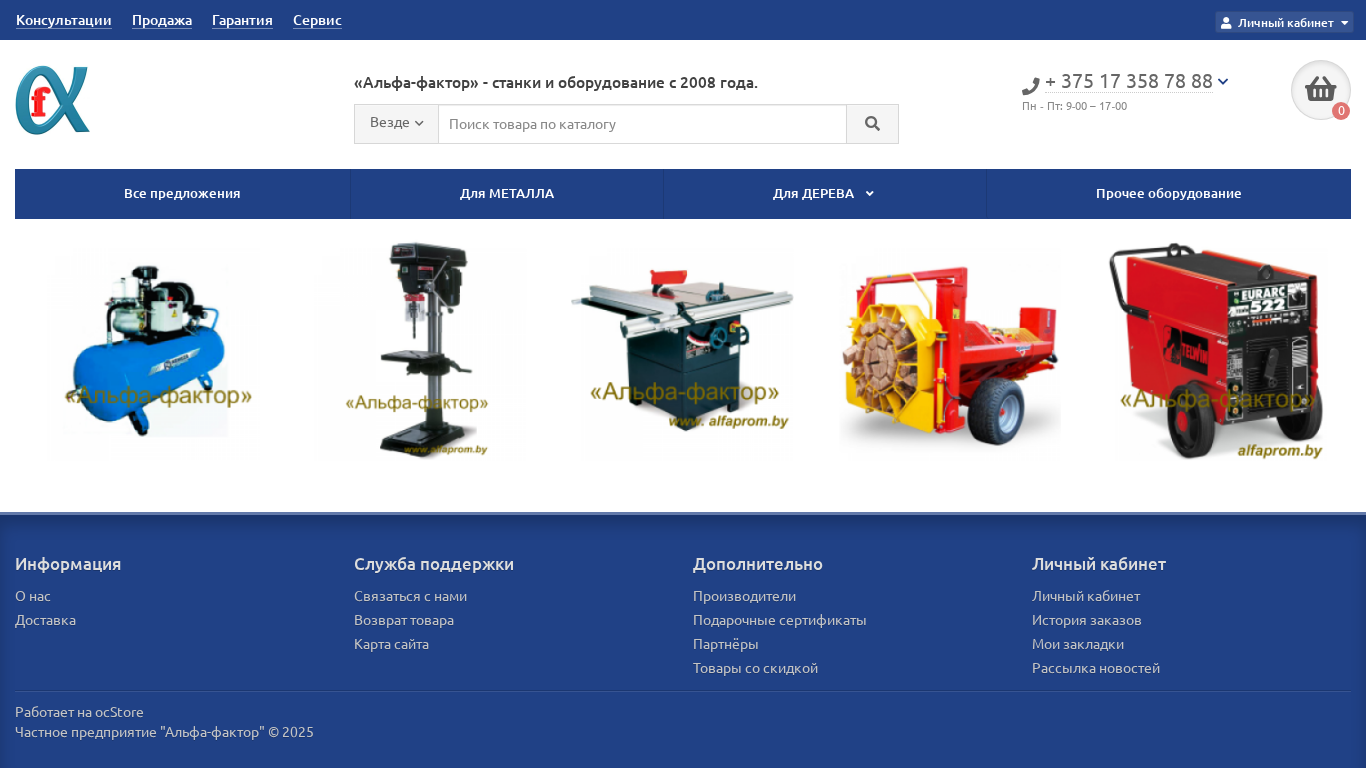 | AI-анализ | This online resource, named "Альфа-фактор" (Alpha-factor), is a B2B e-commerce platform for the sale of machinery and equipment, with a focus on stans and other related equipment for metal and wood processing. The website has been operational since 2008. It offers a personal cabinet where users can register, authorize, receive consultations, and make purchases. The site includes a variety of equipment for metal and wood processing, such as sawmills, circular saws, and chippers. Additionally, there is a section for transportation of wood and logs. The website also provides information about the company, delivery, customer support, and return policy. It is a private enterprise, "Альфа-фактор", and is powered by ocStore platform. |