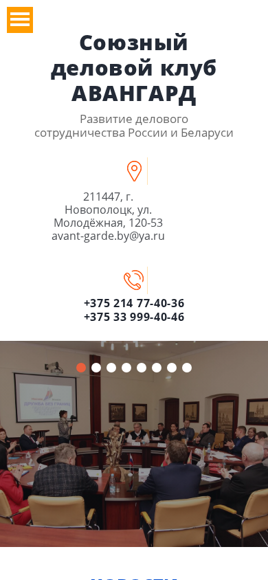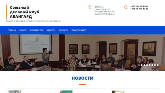 | SEO-описание | Общественное объединение «Союзный деловой клуб Авангард» основано в марте 2019 года с целью развития делового сотрудничества с руководителями предприятий России и других стран ЕАЭС... |
