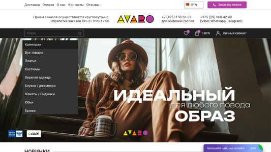 | SEO-описание | Avaro — это стиль, качество и уверенность. Откройте для себя новые коллекции одежды для женщин. Бесплатная доставка и примерка. Создайте свой уникальный образ. |