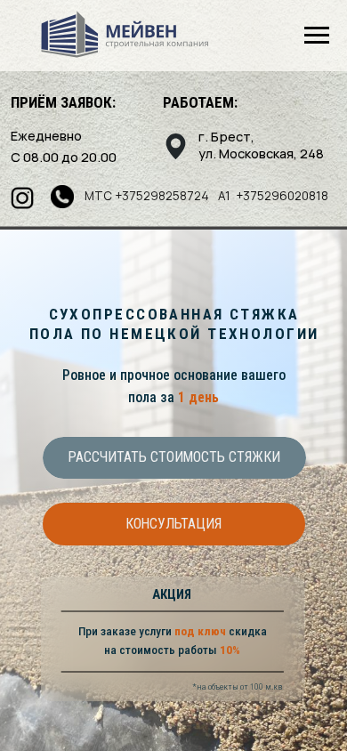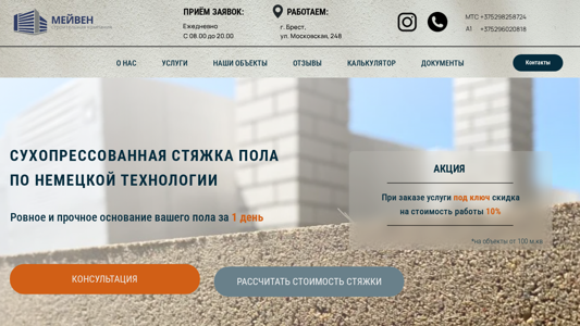 | Ключевые слова | Мейвен. Стяжка пола. Сухопрессованная стяжка брест. Стяжка пола Брест. Цена |