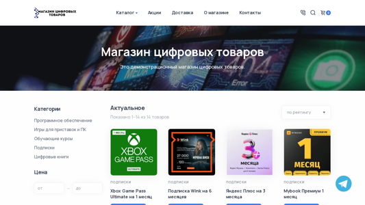 | SEO-описание | Это демонстрационный магазин цифровых товаров. |