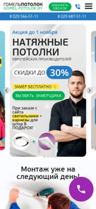 | SEO-описание | Gomel Potolok - фирма по продаже натяжных потолков в Гомеле от европейских производителей. Монтаж натяжных потолков быстро и качественно. Подробнее на сайте и по телефонам: ☏ 8 029 566-51-11, ☏ 8 029 687-51-11 |