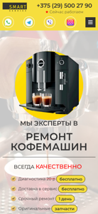 | AI-анализ | --- The website is a professional coffee machine repair service based in Minsk, Belarus. The title is "Ремонт кофемашин в Минске | SS | Ремонт кофеварок" and the description states that they are experts in repairing any coffee machine or coffee maker with an official guarantee. Their contact number is (029) 500-27-90. The website includes sections for repair services of various brands such as Delonghi, Saeco, Bosch, Jura, Melitta, Krups, Siemens, Nivona, Philips, Gaggia, Franke, Kuppersbusch, AEG, WMF, VITEK, Normann, and Aresa. They offer repair for built-in coffee machines and professional coffee machines as well. The website also includes information about the company, warrant |