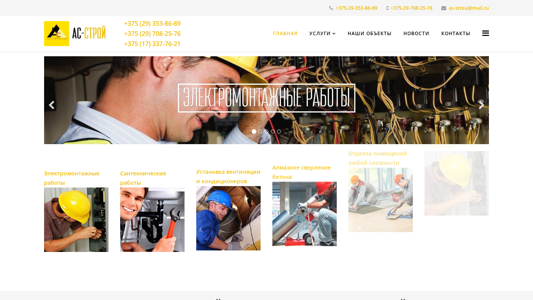 AI-анализ | This website is dedicated to the Belarusian company ODO As-stroy, which specializes in santech and electromontaj works in Minsk. The company offers a wide range of services including installation and mounting of heating, water supply, sewage, external engineering networks, thermal points and boilers, technological equipment, commissioning works, electrical wiring, lighting systems, electrical switchgear, and outdoor electrical works, as well as grounding and lightning protection, and outdoor lighting. The website's keywords reflect the focus on santech and electromontaj works in Minsk. The top words suggest that the website contains information about services, systems, and installations, with a significant emphasis on santech and electromontaj works. The company has been active in the Belarusian construction market since 2008. ODO As-stroy is a company |