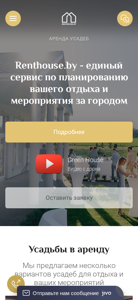 | AI-анализ | language: en --- This online resource, RentHouse.by, offers rental services for modern estates near Minsk. Users can rent an estate, a cottage for a day, a weekend, or for special events like weddings. The website provides information on three estates: Sun House, La Dolce Vita House, and Green House. Sun House is a cozy cottage with a small company-sized sauna and swimming pool, perfect for a romantic evening. La Dolce Vita House is an ideal location for weddings and corporate events, featuring a spacious and picturesque property, a large banquet hall, sauna, and swimming pool. Green House offers guests the beauty of nature and tranquility while relaxing by the river Neman in a cottage. All estates in RentHouse.by are unique and individual, allowing each guest to find their perfect 'piece of heaven' for rest and |