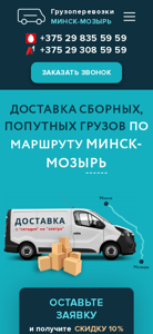 | AI-анализ | The portal is a cargo transportation company based in Minsk and serving the Minsk-Mozir route. The website provides a form to request a call back and offers a 10% discount to those who fill it out. The company has been operating for over 10 years, delivering consolidated and secondary cargo between Minsk and Mozir. It aims to provide a punctual and responsible service with an individual approach and technical inspection. The website's contact information includes phone numbers for Mozir and an email address. The company's services include cargo transportation between Minsk and Mozir. The website's scheme of operation involves making a request via email or phone, confirmation of the order, and a manager contacting the client for order details. The company is registered under the name of Dmitriy Viktorovich Borisenko with the UNP number 490800860. The website is |