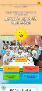 | AI-анализ | This website is for a kindergarten named "Detsky Sad #88 g.Vitebska" located in the city of Vitebsk, Belarus. The title and description include keywords related to the kindergarten, education, safety, news, and contacts. The top words suggest that the website contains information about the kindergarten's schedule, September, detailed information, the city of Vitebsk, safety, news, and contacts. The website likely provides information about the kindergarten's administration, educational network, leadership, and contact details. It may also offer information about the kindergarten's pedagogical team, conditions for enrollment, additional educational services, and social support. The website likely complies with local legal requirements and has a plan of work and budget report. It may offer electronic application procedures and have a rating portal. The website may provide information about the kindergarten |