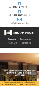 | AI-анализ | The web project "Shkafminsk.by" is a e-commerce platform for custom-made radius cabinets and Hettich cabinets in Minsk, Belarus. Users can place orders for radius cabinets and Hettich cabinets at competitive prices in Minsk, with photos and prices available in the website's catalog. The site features a large selection of radius cabinets and Hettich cabinets with various sizes, and customers can contact the company via phone or email for more information. The company offers advantages such as experienced installers for precise installation, a production time of 10-14 days, and a 2-year warranty on products using only high-quality materials and hardware from world-renowned manufacturers. The website includes a catalog of radius cabinets and Hettich cabinets with popular models and sizes, allowing customers to calculate prices and place orders online. |