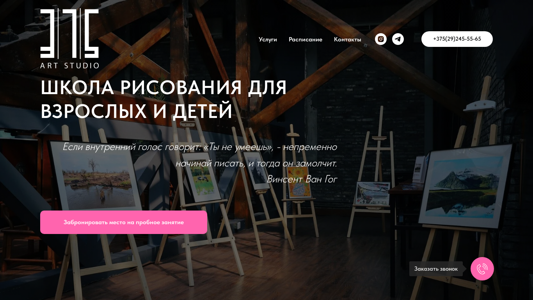 | AI-анализ | --- The portal Brezhneva.by, titled "375ArtStudio - студия живописи," is a studio dedicated to teaching drawing skills and offering mental relaxation for its students. The creators believe that drawing provides a genuine respite and relief to the modern mind, often overwhelmed with information. Services and scheduling, along with contacts, are available on the site. The studio offers drawing classes for both adults and children. Vincent Van Gogh's quote, "If you hear a voice within you say 'you cannot paint,' then by all means paint, and that voice will be silenced," is prominently displayed, encouraging visitors to start drawing regardless of their perceived abilities. The studio has been in operation since 2018, with a focus on aesthetic education for children and providing adults with an opportunity to explore their creative potential through painting. Students can learn various painting techniques, including ac |