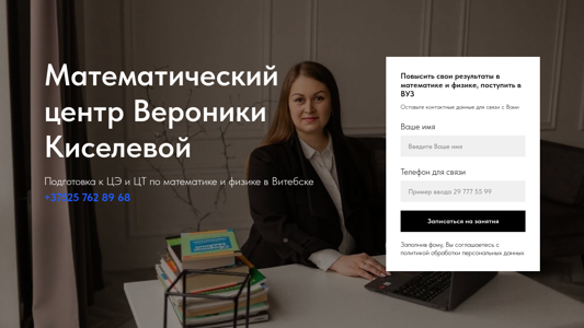 | AI-анализ | --- The portal kiseleva.by is a mathematics and physics preparation center for students in grades 5-11 in Viciebsk, Belarus. It offers individual and group classes for exam preparation, including the Centralized State Exam (ЦЭ) and Centralized Test (ЦТ). The center is run by professional educator Veronika Kiseleva, who leads a team of mathematics and physics experts. The website provides information on course offerings, registration, and contact details. The title and description of the website include keywords related to mathematics and physics preparation courses in Viciebsk, as well as the name of the center's founder. The top words in the data indicate a focus on mathematics, Veronika Kiseleva, preparation classes, and individual and group sessions. |