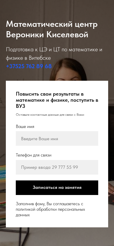 | SEO-лексика | математике вероники киселевой занятия репетитор вероника киселева центра подготовка математического центр физике месяц экзамену учащийся витебске только математический индивидуальные профессиональный |