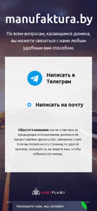 | AI-анализ | The web project manufaktura.by is currently for sale. For any inquiries related to the domain, please contact Hostfly. Note that we do not respond to inquiries regarding the previous use of the domain or any related services. If you reached this page for reasons unrelated to the domain sale, please do not contact us to avoid confusion. Hostfly is the hosting provider for the manufaktura.by website. |