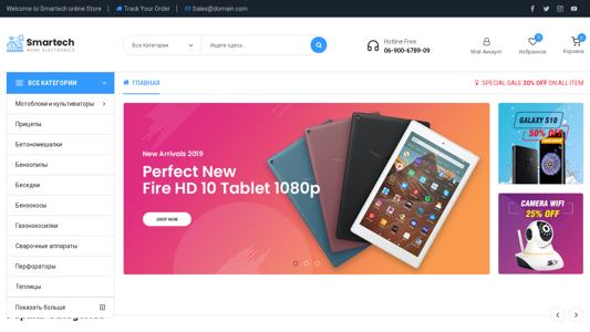 | AI-анализ | This website is an online store specializing in selling various types of agricultural and construction equipment. The home page features a menu with different categories such as "Мотоблоки и культиваторы" (Motoblocks and Cultivators), "Навесное оборудование" (Attachments), "Бензиновые" (Gasoline), "Дизельные" (Diesel), "Бензопилы" (Chainsaws), and "Беседки" (Pavilions). The website also offers a search function and a cart for users to add and view items. The store emphasizes the importance of JavaScript and cookies for proper functionality, and provides contact information for sales inquiries. Popular categories include Gasoline, Attachments, and Motorblocks and Cultivators. The website is available in Belarusian |