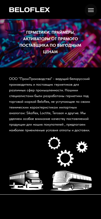 | AI-анализ | The website Beloflex.by is an e-commerce platform selling germetics, examples, and activators directly from a supplier at competitive prices. The website offers a catalog of products and provides contact information for the company OOO "PromProduction", a leading Belarusian producer and supplier of germetics for various industries. The company has developed germetics under the Beloflex brand, which matches the technical characteristics of well-known imports such as Sikaflex, Loctite, and Teroson. The website prioritizes product quality for its customers, offers favorable payment and delivery terms, and allows visitors to leave their phone number for a callback. The website's privacy policy informs users that their personal data, including name, phone number, and email, will be processed for various purposes, such as sending notifications and responding to inquiries. The website is subject to Belarus |