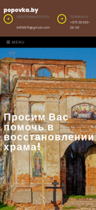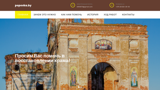 | AI-анализ | <aside> 🔗 [popovka.by](http://popovka.by) 📧 [3459975@gmail.com](mailto:3459975@gmail.com) 📞 +375 29 620-29-00 </aside> The website is dedicated to the reconstruction of the Church of Saint Nicholas the Wonderworker in the village of Lenino, Belarus. The title and description of the website include the phrase 'reconstruction of the church' and 'help' multiple times, indicating an ongoing effort to restore the historical religious site. The keywords and top_words include 'temple', '2021g', 'reconstruction', and 'restoration', further emphasizing the focus on the church's renovation. The website is part of |