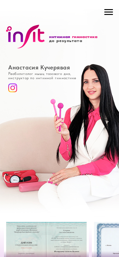 | AI-анализ | This online resource, titled "INFIT - Интимная гymnaстика до результата" (Intimate Gymnastics to the Result), is dedicated to providing personalized training programs based on the best practices and techniques from the American PCI Association, feedback training methods, and Eastern methods for controlling pelvic muscles. Keywords related to the website include intimate gymnastics in various Belarusian cities, postpartum recovery, preparation for childbirth, pain during sexual intercourse, irregular menstrual cycles, and Eastern techniques. The website offers solutions for various problems, details about the training process, and information on the trainer, Anastasia Kucheryava, who is a rehabilitologist of the pelvic floor muscles and an instructor of intimate gymnastics. The trainer holds a diploma from the International Academy of Sexology in the specialty of "Training |