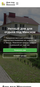 | AI-анализ | The website is for renting a cozy cottage with a sauna and swimming pool, located 7 km from Minsk, Belarus. The website provides information about the cottage's amenities, including four bedrooms, a large living room, kitchen, and three bathrooms, accommodating up to 12 people. The property includes a separate territory with a gazebo, barbecue, children's playhouse, swings, and parking for four vehicles. The cottage features a Russian sauna and a heated swimming pool, which operates during the summer months. The interior is built with eco-friendly materials and is fully furnished with necessary household appliances. The website also offers Wi-Fi internet, Smart TV, a column for parties with DVD and Karaoke, and a table football game for guests' entertainment. Visitors can view the property's photos in the photo gallery and read reviews from |