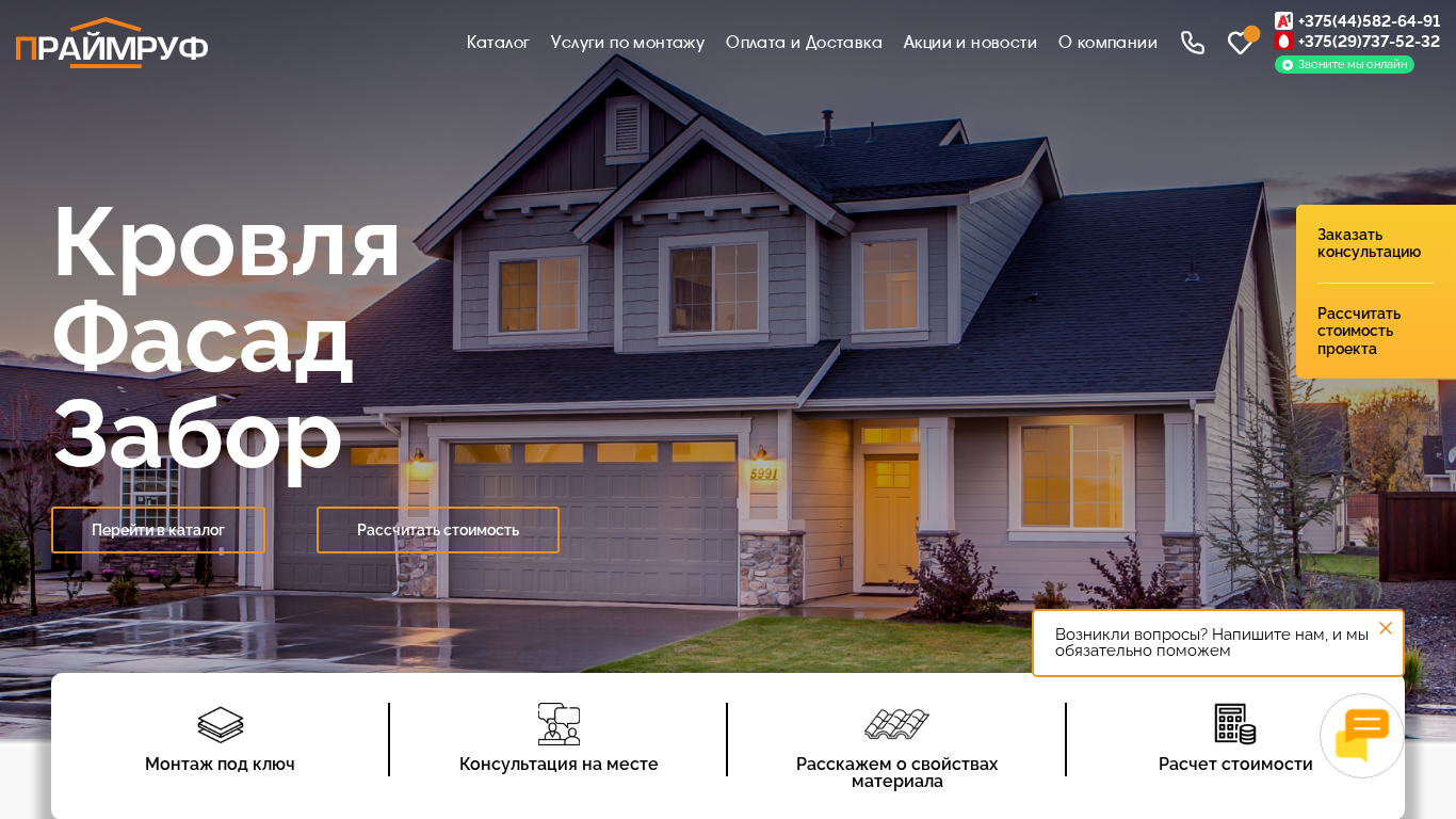 | AI-анализ | This website is an e-commerce platform for purchasing roofing materials and related products in Belarus. The company, Primeruf, offers a wide range of products including metal and flat roofing, materials for facades, windows, and various types of fencing. They provide low prices and a quality guarantee. The website features a catalog with various categories for easy browsing, as well as services for installation and consulting. Customers can contact the company at phone numbers +375(44)582-64-91 and +375(29)737-52-32. The website also offers financing options, design services, and information on company advantages. The website's most popular products include a modular metal roofing system called KVINTA UNO, a metal roofing system called TRAMONTANA, and a metal roofing system called Viking |