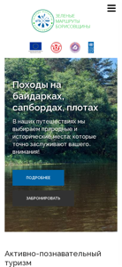 | SEO-описание | Сплавы на байдарках и сапбордах Инициативы «Зеленые маршруты Борисовщины» которая реализуется в рамках проекта «Поддержка экономического развития на местном уровне в Республике Беларусь» |