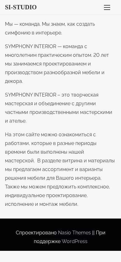 | AI-анализ | The website SI-STUDIO is a Belarusian furniture design and production company. It features a portfolio of their past projects, materials used, and information about their laboratory furniture. The site also offers individual project planning, execution, and installation services. The contact information includes two phone numbers, one for Belarus and one for Russia, as well as a contact form. The website was designed and developed using Nasio Themes and WordPress. |