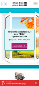 | AI-анализ | --- This online resource is dedicated to providing PVC windows directly from the factory in Minsk and the Minsk region with a 12-year guarantee. The ordering and installation process takes 2-3 days. The website offers various types of PVC windows such as laminated windows for homes and cottages, doors, balconies and loggias, and insulation. The site also provides information on how to choose PVC windows and contact details for the company. Keywords include 'windows PVC Minsk', 'buy PVC windows', 'PVC windows prices', 'plastic windows in Minsk', 'buy plastic window', 'plastic windows prices', 'install PVC windows', 'install plastic windows', 'order PVC windows', and 'order plastic windows'. The site also features sections on balconies and loggias, pricing, and a calculator to help customers estimate |