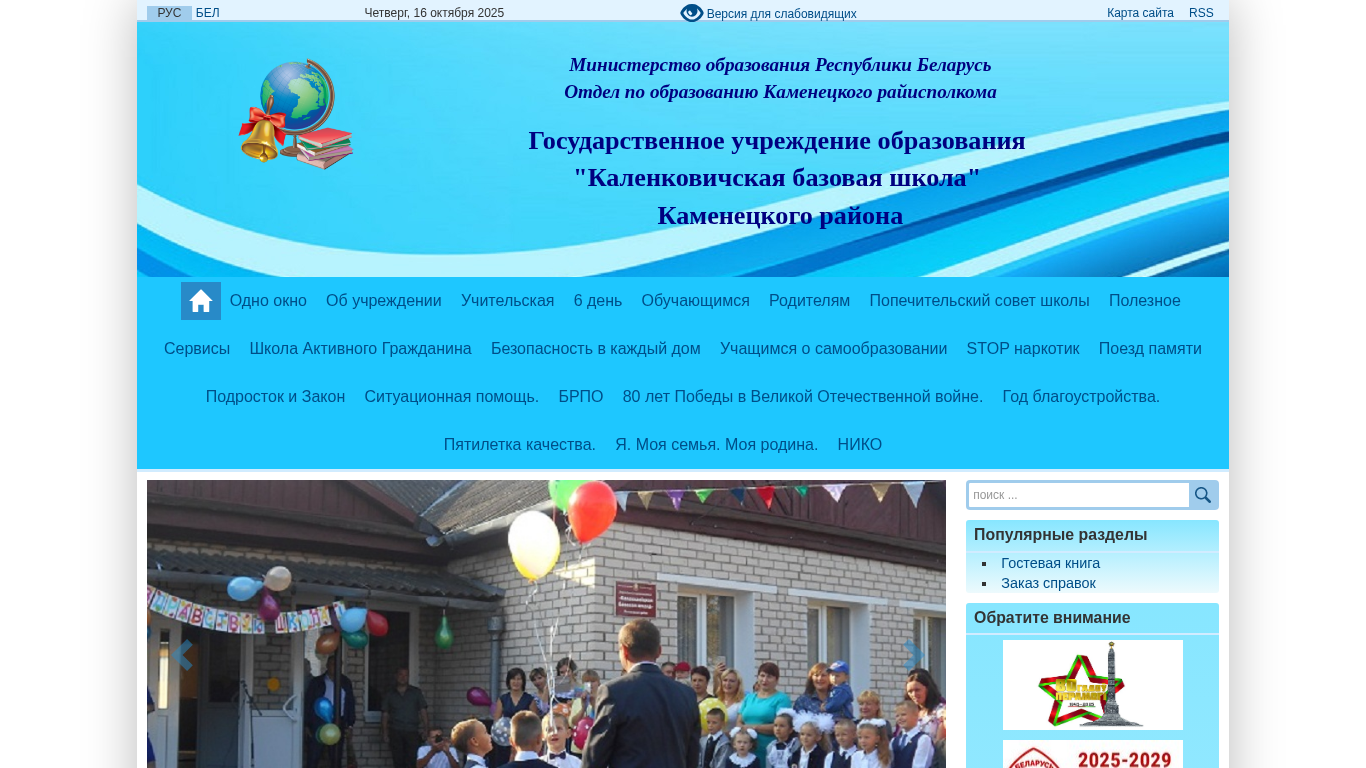 | AI-анализ | This online resource is the official website for Каленковичская базовая школа (Calenkoвичская базовая школа, or Calenko School), a state educational institution located in the Kameneцky district of Belarus. The site provides information on the school's administration, schedule, educational programs, and policies. Keywords associated with the site include "school," "education," "Belarus," and "calendar," reflecting its primary function as a source of information for students, parents, and administrative staff. The site includes sections on the school's structure, rules for pedagogical workers, and various educational initiatives. Additionally, visitors can find information on the school's library, contact information, and policies on personal data protection. The site is designed with a standard color scheme and features a clear, easy-to-navigate layout. Images are used sparingly, and the |