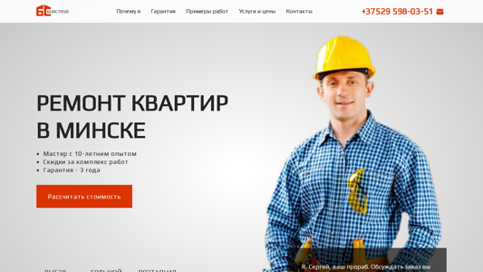 | SEO-описание | Качественный ремонт квартир в Минске под ключ. Вывоз строительного мусора. Рассрочка. Опыт более 10 лет. Гарантия 3 года. |