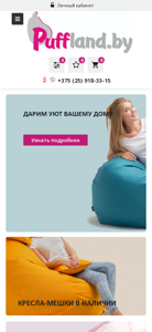 | AI-анализ | --- The website is an e-commerce store selling affordable beanbag chairs, named Puffland, based in Mogilev, Belarus. It offers various types of beanbag chairs with different textures, from oxford and duspo to coated leather (eco-leather), and provides a personalized approach to customers. The store works across Belarus and offers a personal cabinet and a contact number for inquiries. The website includes a catalog, news section, delivery and payment information, and a policy on data processing and confidentiality. Customers can place orders for consultation or request a callback. The store also provides information on available beanbag chairs, their covers, and the catalog of goods. The site is available in Belarusian and Russian languages. |